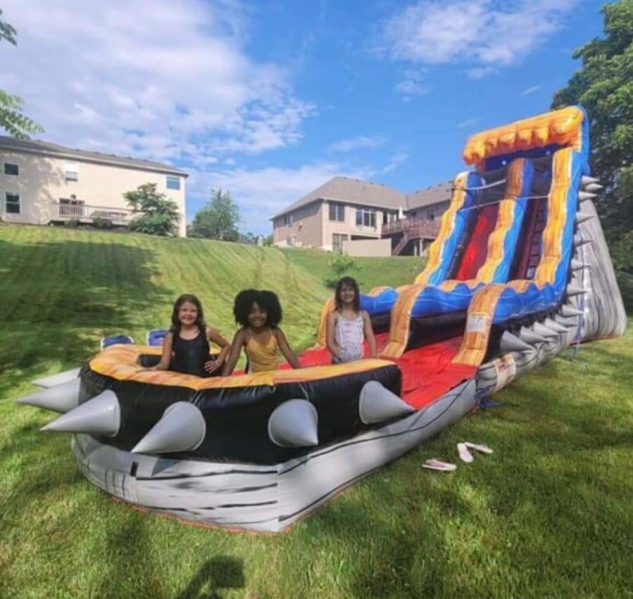 20ft Water slide hot summer fun 20ft 💧 Spikes Waterslide in Cincinnati, Dayton is the ultimate backyard attraction for sizzling days. This grey slide with bold exterior spikes and a bright red interior delivers eye-catching thrills and nonstop play. Perfect for families, parties, and community events. Cool off. Slide fast. Laugh louder. 😎💦
