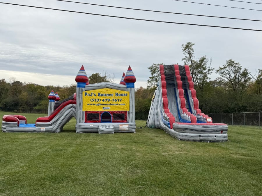 Water Slide Bounce house Grey Mountain 🏔️ Combo with basketball 🏀 hoop in Glendale, Springdale, Mason, Liberty Township, Ross, Harrison, Oxford, Middletown, Lebanon, Loveland, Fairfield — delivered and set up by our team. Enjoy reliable drop-off, expert setup, and clear safety instructions. ✅