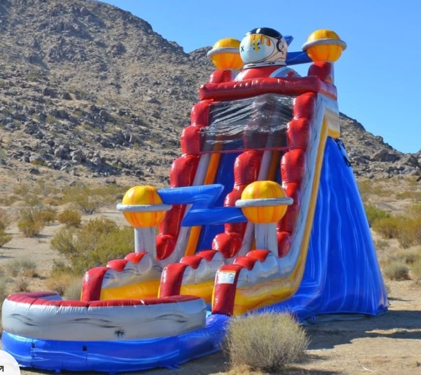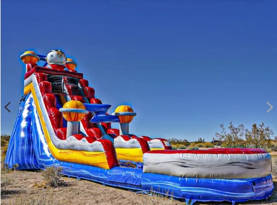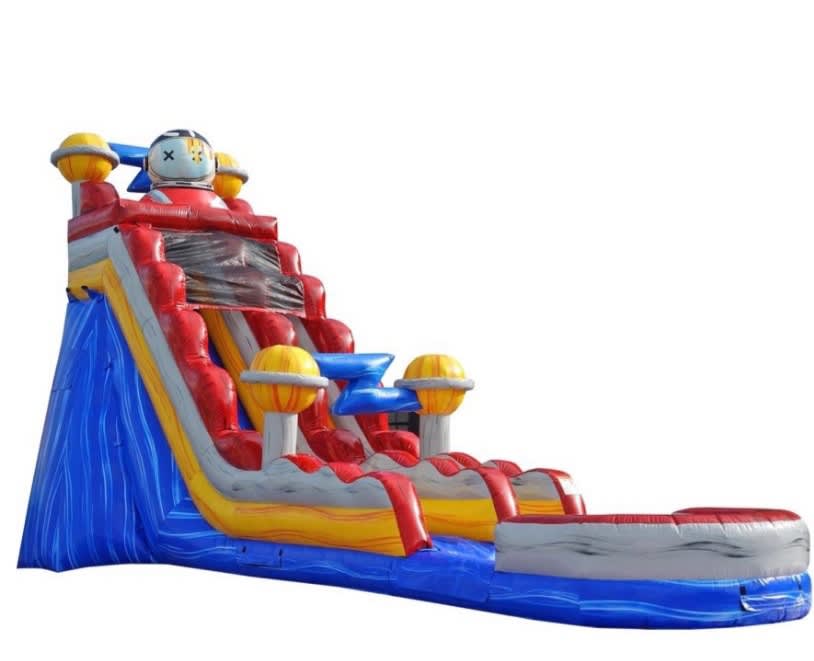 Blast off into party happiness with our astronaut waterslide! When you want to rent a water slide that is out of this world, P&J Bounce House have the perfect option for you.
