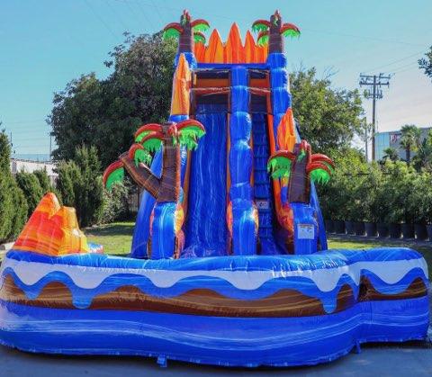 This is a 22ft inflatable water slide that will really make kids' heads turn! We're delighted to be able to provide exceptional-quality bounce houses and inflatables throughout Cincinnati, and our 20ft Oasis waterslide is no different. This has a full 3D design of palm trees along with a true kiddie pool to complete the slide with a splash. This breathtaking inflatable, will attract plenty of attention at parties and occasions of all varieties.