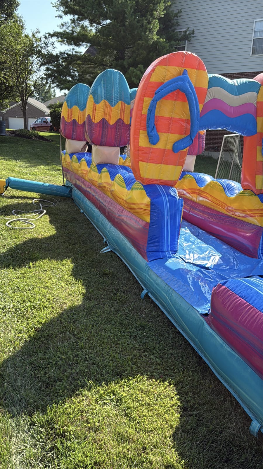 We provide Slip n Slide with splash Pad Pool Party Slip N Slide rental service across Glendale, Springdale, Mason, Liberty Township, Ross, Harrison, Oxford, Middletown, Lebanon, Loveland, and Fairfield. Book early for weekend parties.