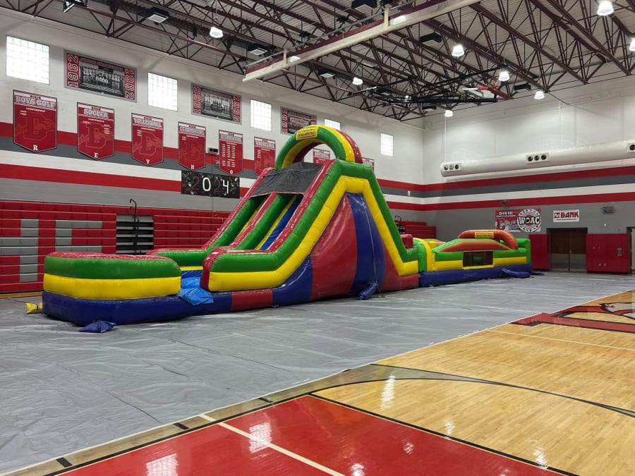 Kids will have a blast competing against each other then let them end the competition with a slide into the 18ft splash pool.